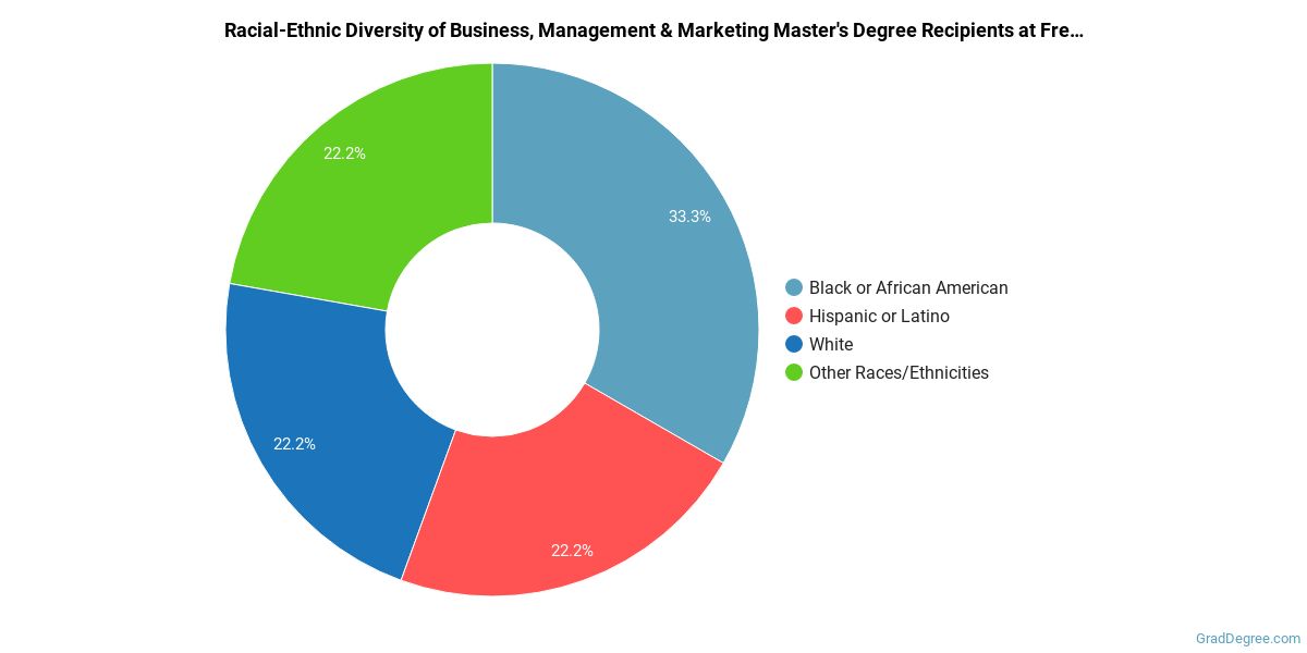 The following table and chart show the race/ethnicity for students who recently graduated from Fremont College with a master's in business, management and marketing.