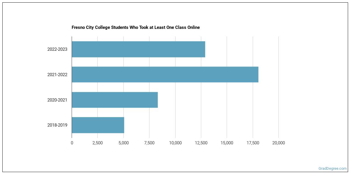 The following chart shows how the online learning population at Fresno City College has changed over the last few years.