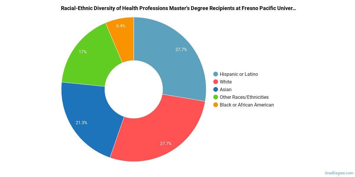 What traits are you looking for in a health professions school? To help you decide if Fresno Pacific University is right for you, we've gathered the following information about the school's health professions program.Fresno Pacific is located in Fresno, California and has a total student population of 3,995. During the 2020-2021 academic year, 47 students received their master's degree in health professions.