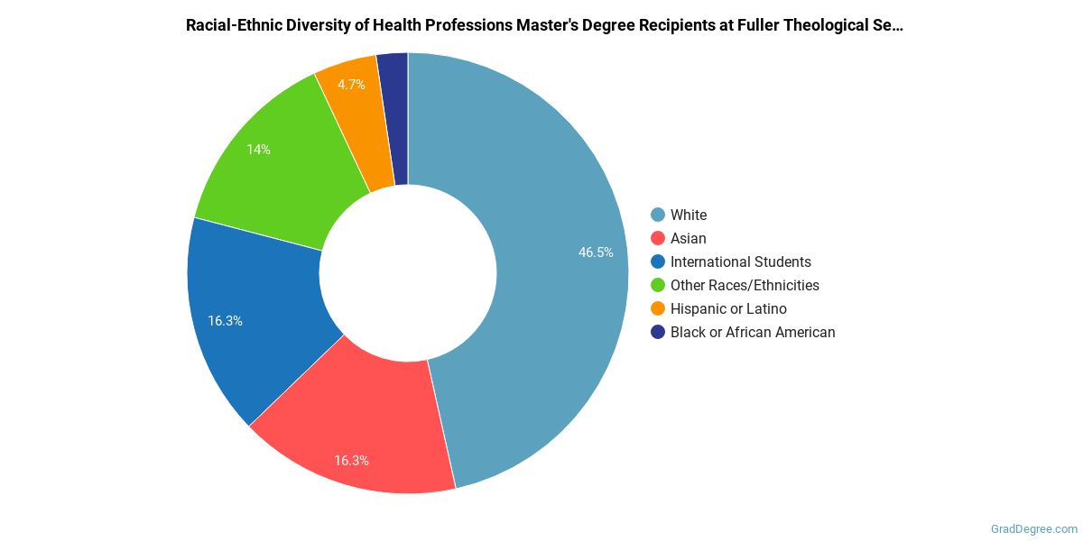 If you are interested in studying health professions, you may want to check out the program at Fuller Theological Seminary. The following information will help you decide if it is a good fit for you.Fuller is located in Pasadena, California and has a total student population of 2,277. During the 2020-2021 academic year, 43 students received their master's degree in health professions.
