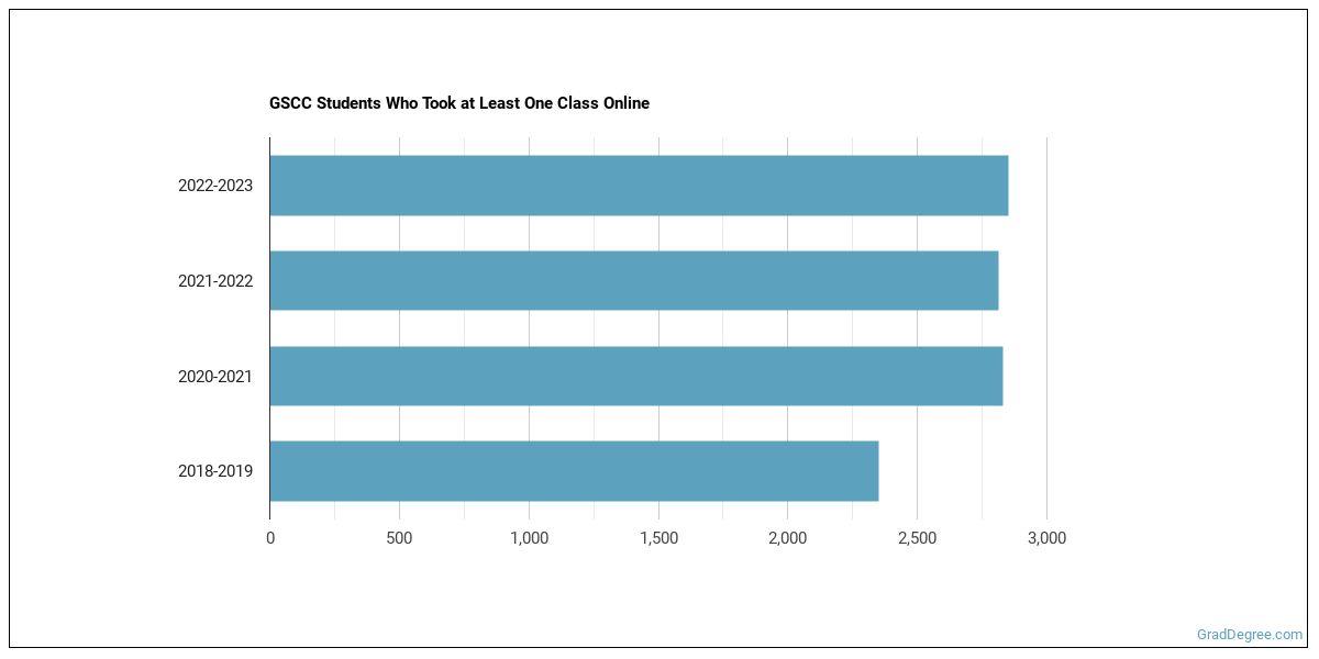 The following chart shows how the online learning population at GSCC has changed over the last few years.
