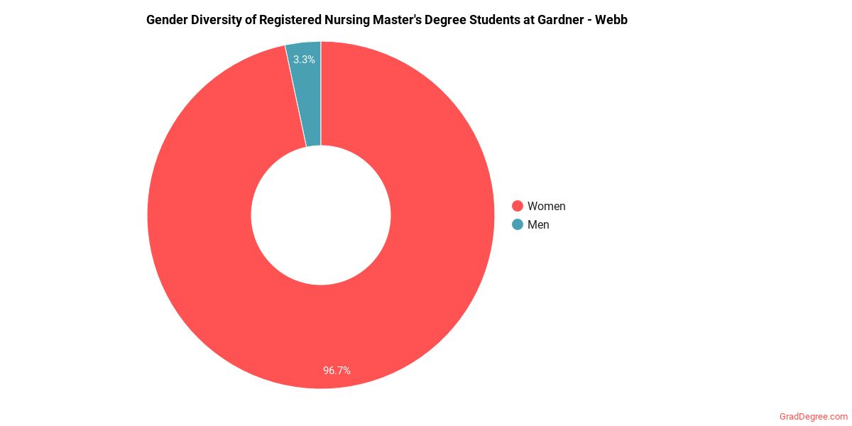 Of the students who received a registered nursing master's degree from Gardner - Webb, 96% were white. This is above average for this degree on the natiowide level.