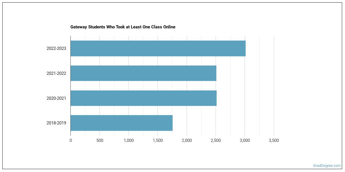 The following chart shows how the online learning population at Gateway has changed over the last few years.