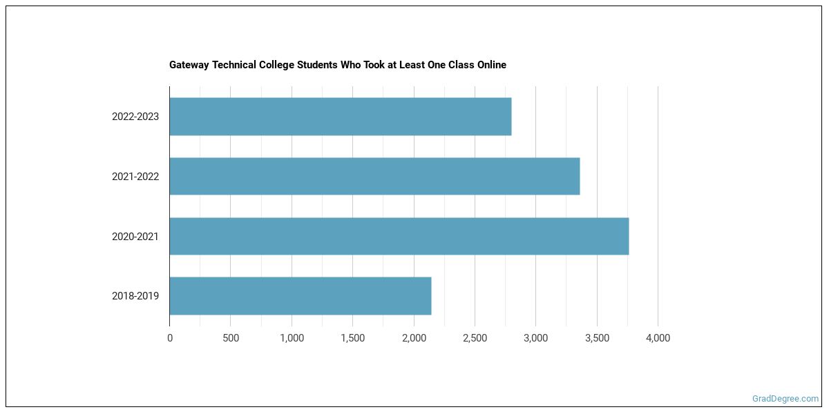 The following chart shows how the online learning population at Gateway Technical College has changed over the last few years.
