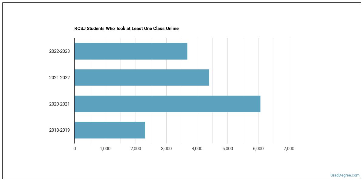 The following chart shows how the online learning population at RCSJ has changed over the last few years.