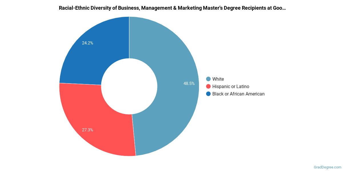 The following table and chart show the race/ethnicity for students who recently graduated from Goodwin College with a master's in business, management and marketing.