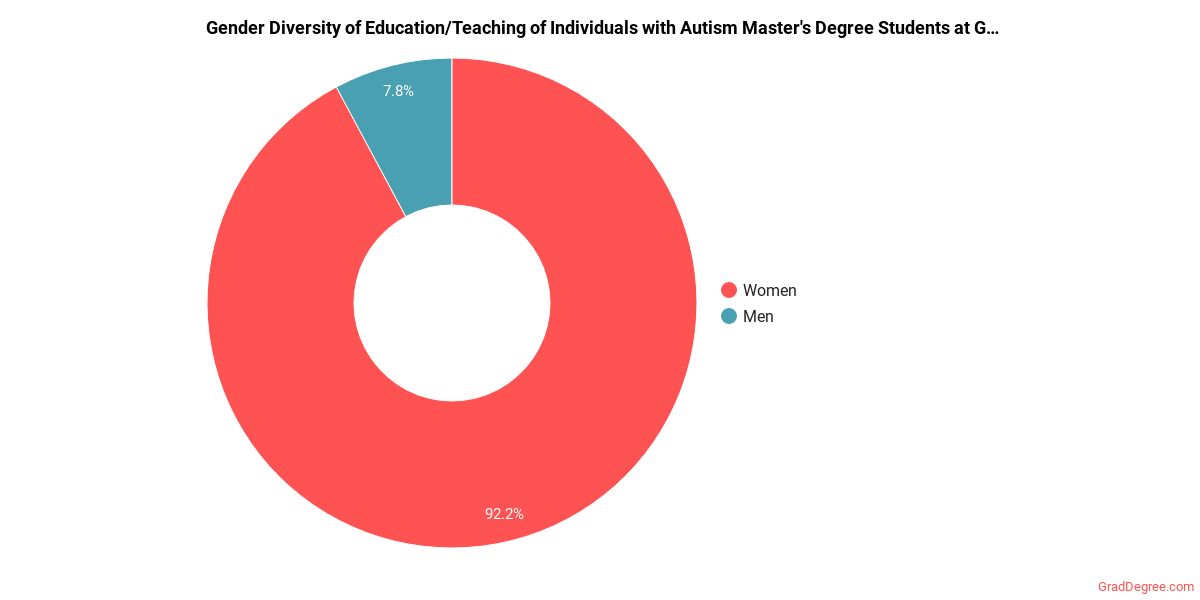 Of the students who received a education/teaching of individuals with autism master's degree from Grand Canyon University, 69% were white. This is typical for this degree on the natiowide level. In the education/teaching of individuals with autism master's program at this school, racial-ethnic minorities make up 30% of degree recipients. That is 3% better than the national average.*