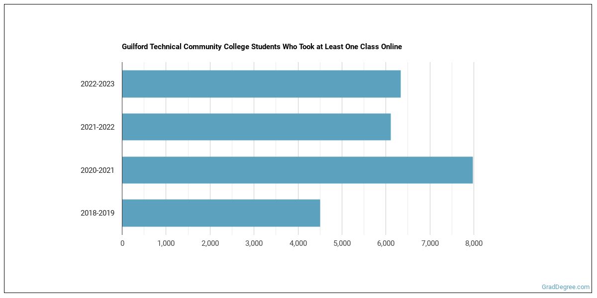The following chart shows how the online learning population at Guilford Technical Community College has changed over the last few years.