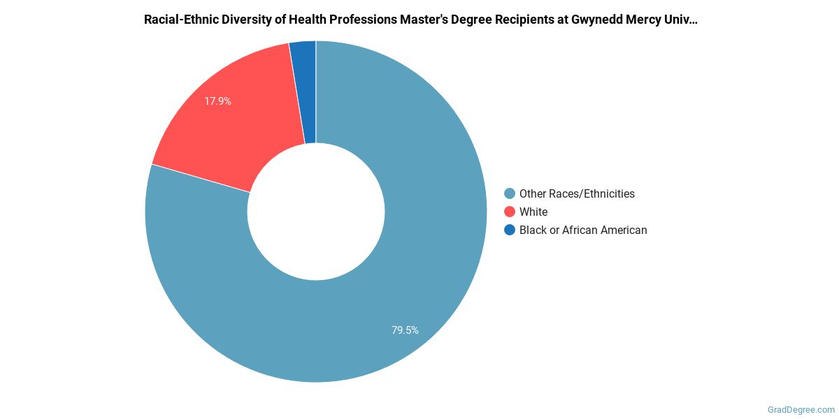The following table and chart show the race/ethnicity for students who recently graduated from Gwynedd Mercy University with a master's in health professions.
