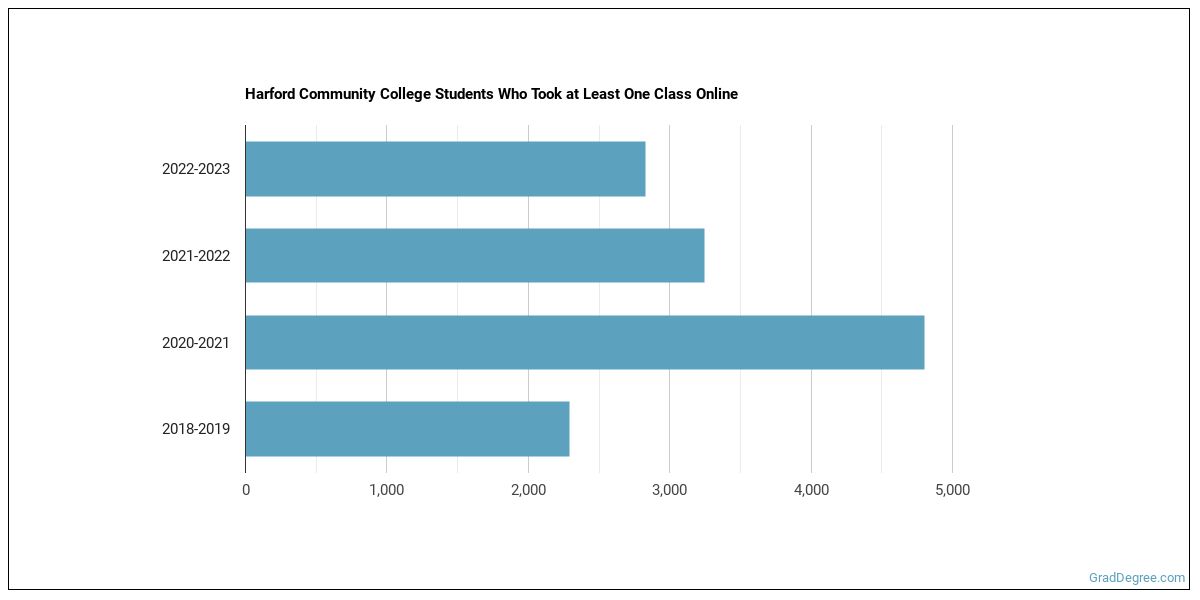 The following chart shows how the online learning population at Harford Community College has changed over the last few years.