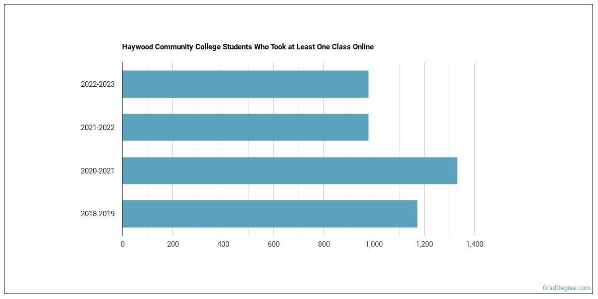 The following chart shows how the online learning population at Haywood Community College has changed over the last few years.