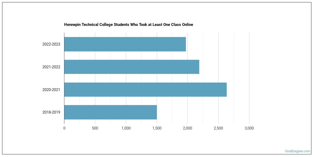 The following chart shows how the online learning population at Hennepin Technical College has changed over the last few years.