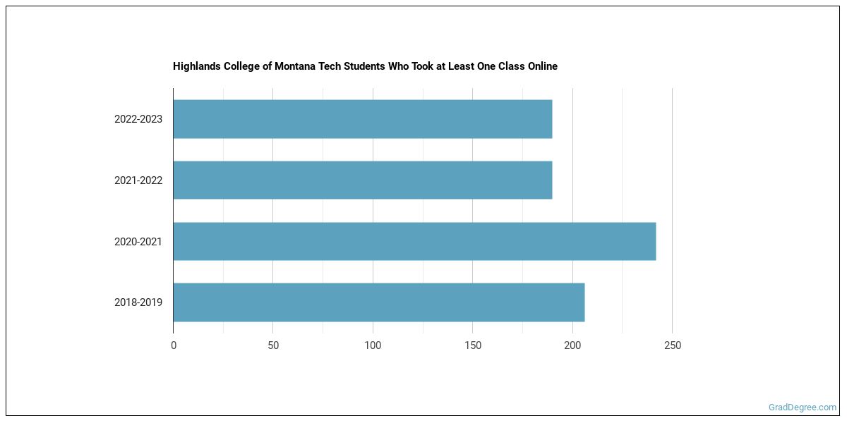 The following chart shows how the online learning population at Highlands College of Montana Tech has changed over the last few years.