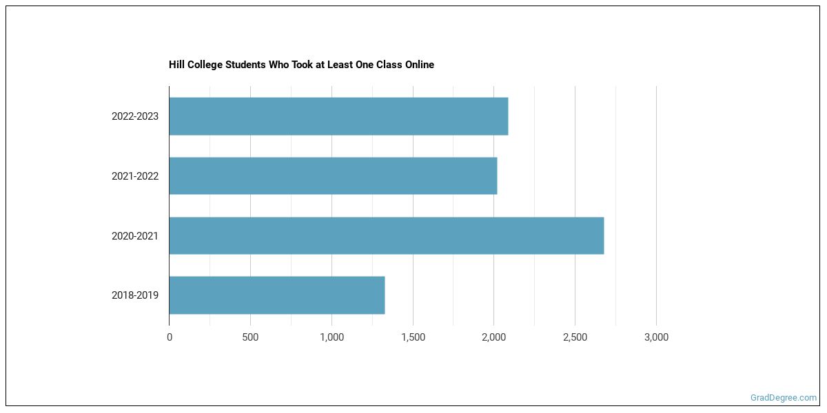 The following chart shows how the online learning population at Hill College has changed over the last few years.