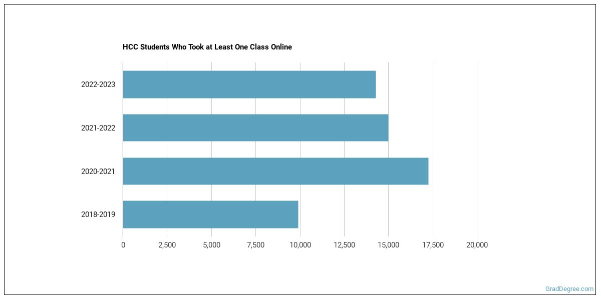 The following chart shows how the online learning population at HCC has changed over the last few years.