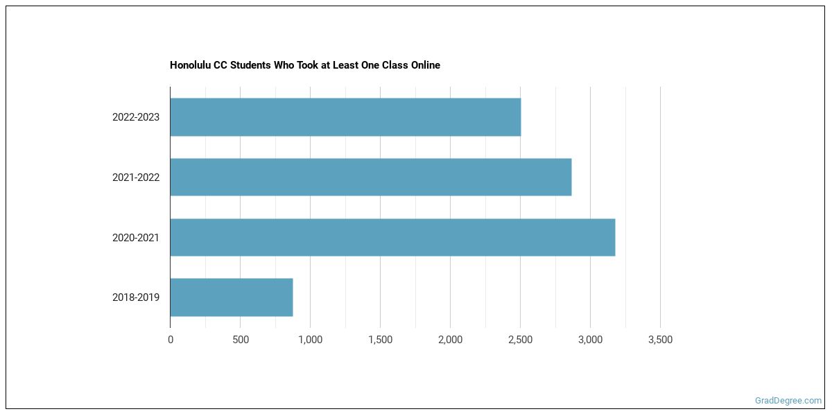 The following chart shows how the online learning population at Honolulu CC has changed over the last few years.