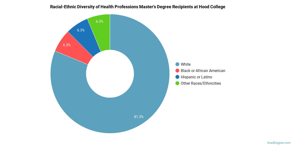 Of the students who received a health professions master's degree from Hood, 81% were white. This is above average for this degree on the natiowide level.