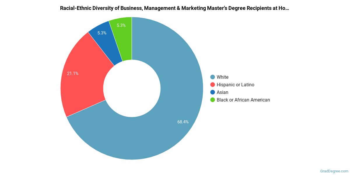 Of the students who received a business, management and marketing master's degree from Howard Payne, 68% were white. This is above average for this degree on the natiowide level.