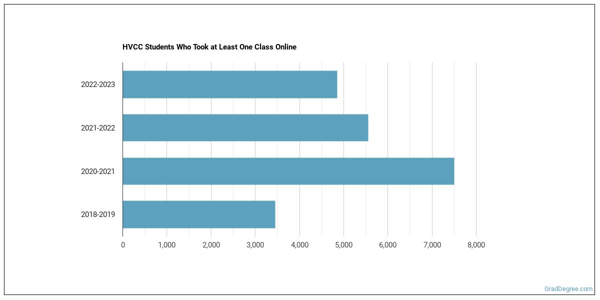 The following chart shows how the online learning population at HVCC has changed over the last few years.