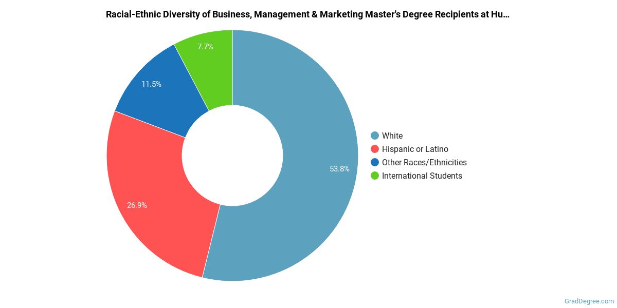 Of the students who received a business, management and marketing master's degree from Humboldt State University, 54% were white. This is above average for this degree on the natiowide level. In the business, management and marketing master's program at this school, racial-ethnic minorities make up 35% of degree recipients. That is 3% better than the national average.*