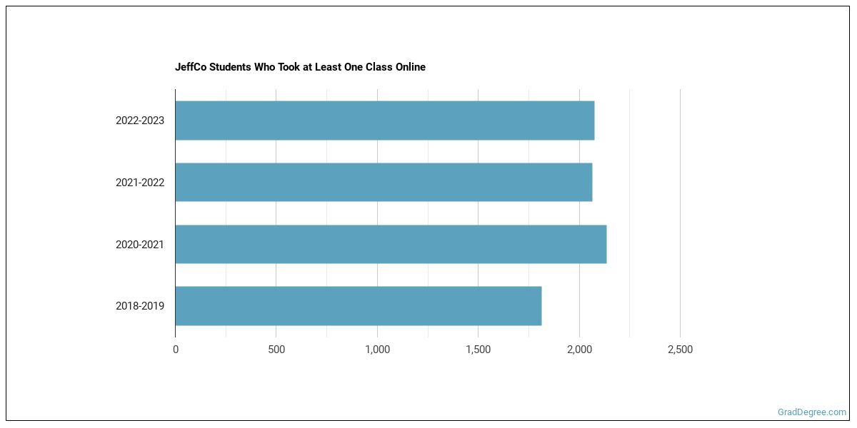 The following chart shows how the online learning population at JeffCo has changed over the last few years.