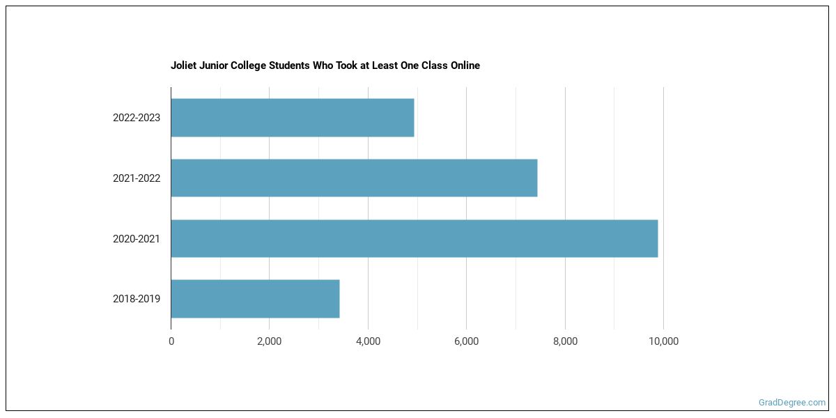The following chart shows how the online learning population at Joliet Junior College has changed over the last few years.