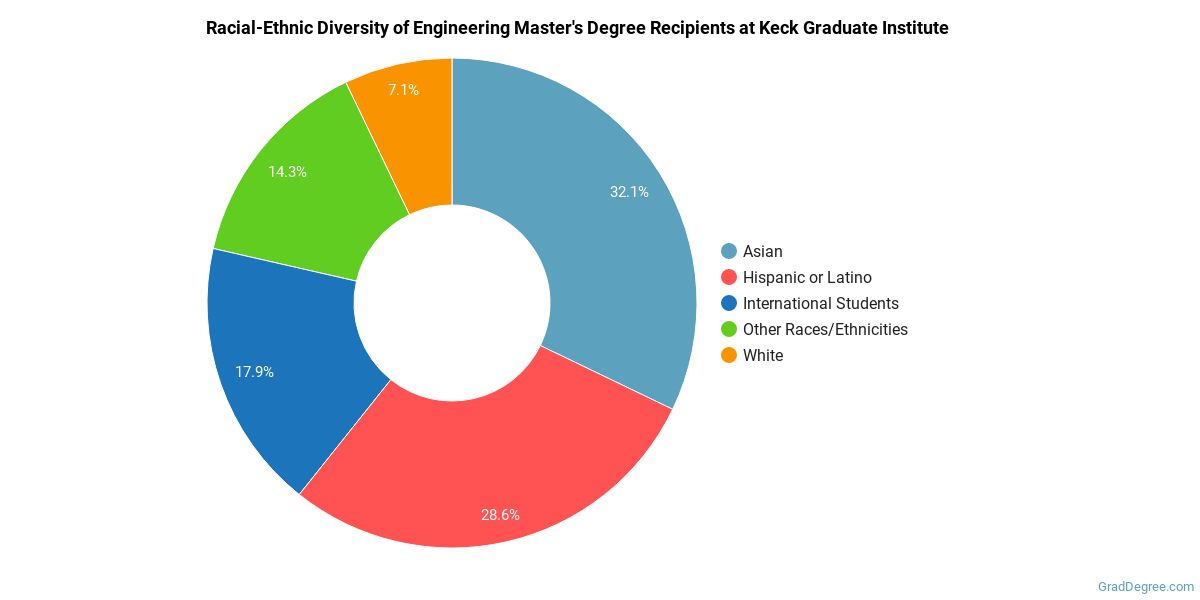 The following table and chart show the race/ethnicity for students who recently graduated from Keck Graduate Institute with a master's in engineering.