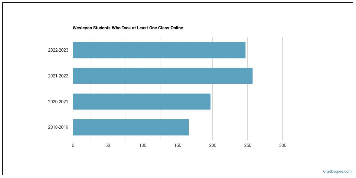 The following chart shows how the online learning population at Wesleyan has changed over the last few years.