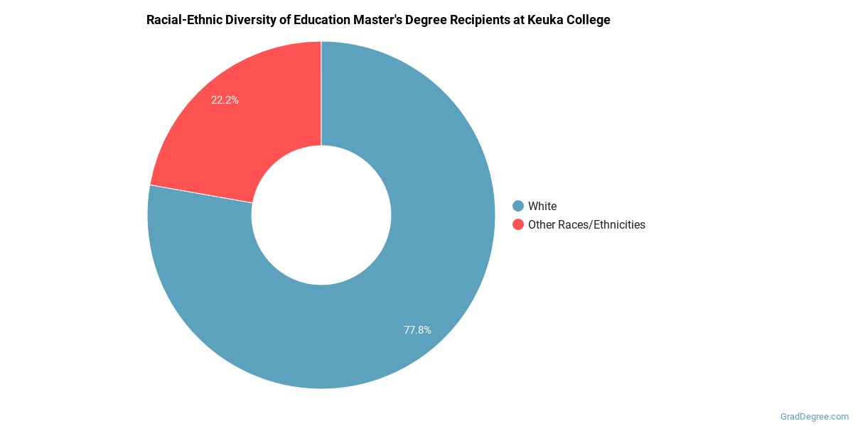 Of the students who received a education master's degree from Keuka College, 78% were white. This is above average for this degree on the natiowide level.