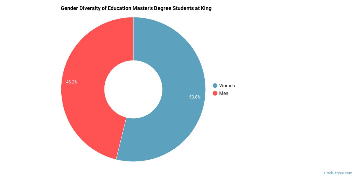 Of the students who received a education master's degree from King, 92% were white. This is above average for this degree on the natiowide level.