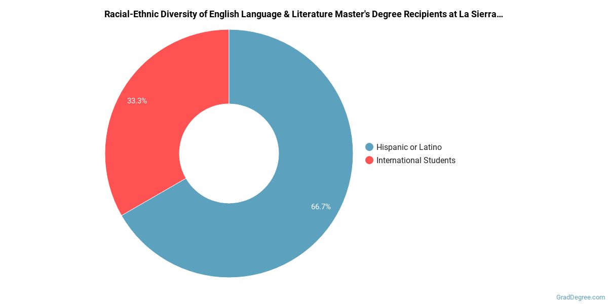 If you are interested in studying English language and literature, you may want to check out the program at La Sierra University. The following information will help you decide if it is a good fit for you.La Sierra is located in Riverside, California and approximately 1,993 students attend the school each year. During the 2020-2021 academic year, 3 students received their master's degree in English language and literature.