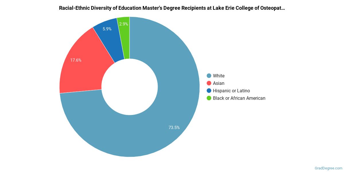 The following table and chart show the race/ethnicity for students who recently graduated from Lake Erie College of Osteopathic Medicine with a master's in education.