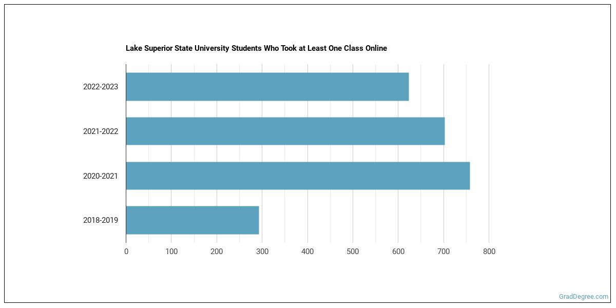 The following chart shows how the online learning population at Lake Superior State University has changed over the last few years.