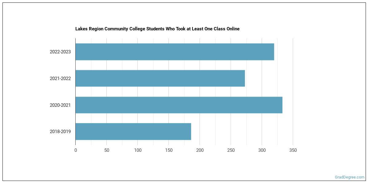 The following chart shows how the online learning population at Lakes Region Community College has changed over the last few years.