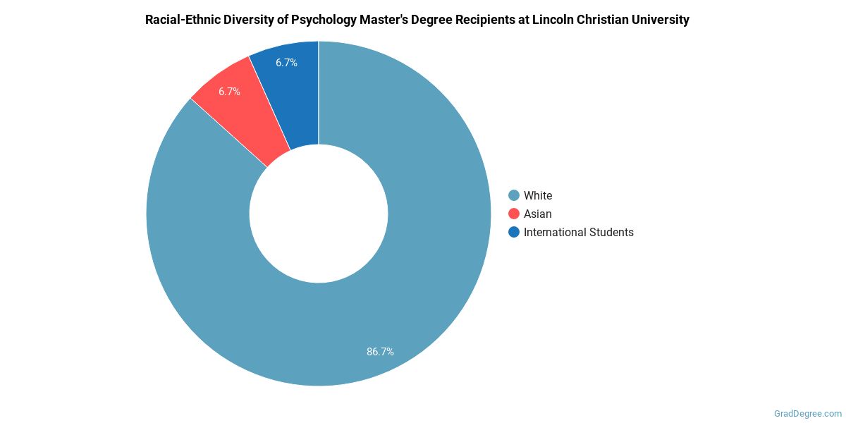 Of the students who received a psychology master's degree from Lincoln Christian College and Seminary, 87% were white. This is above average for this degree on the natiowide level.