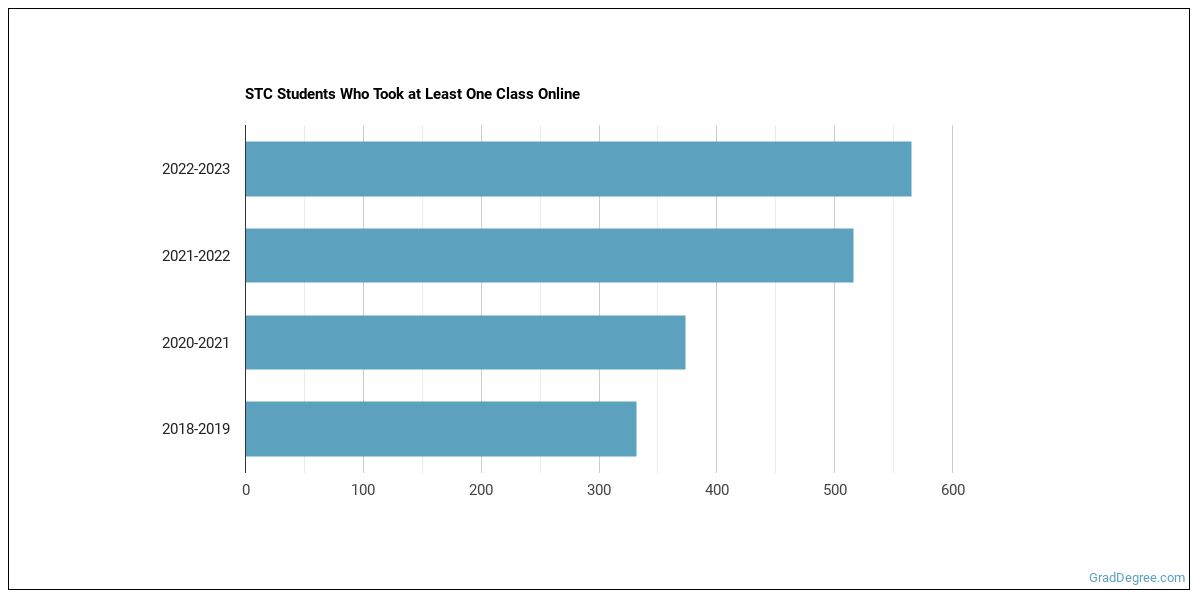 The following chart shows how the online learning population at STC has changed over the last few years.