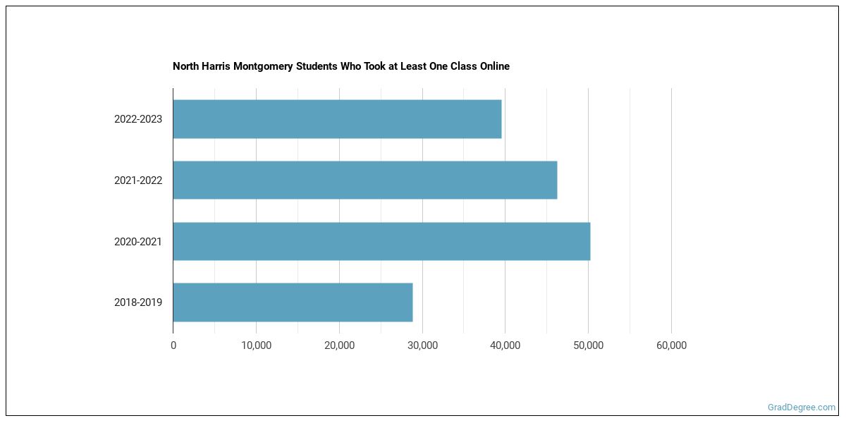 The following chart shows how the online learning population at North Harris Montgomery has changed over the last few years.