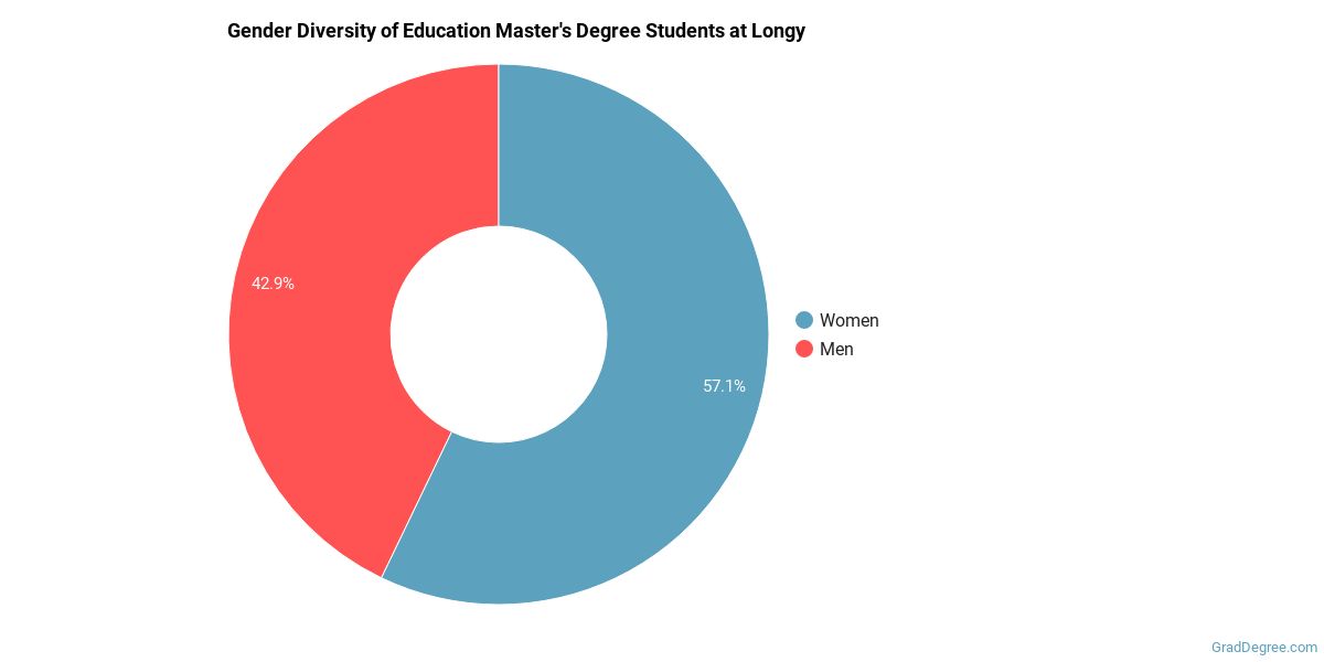 Of the students who received a education master's degree from Longy, 57% were white. This is below average for this degree on the natiowide level.