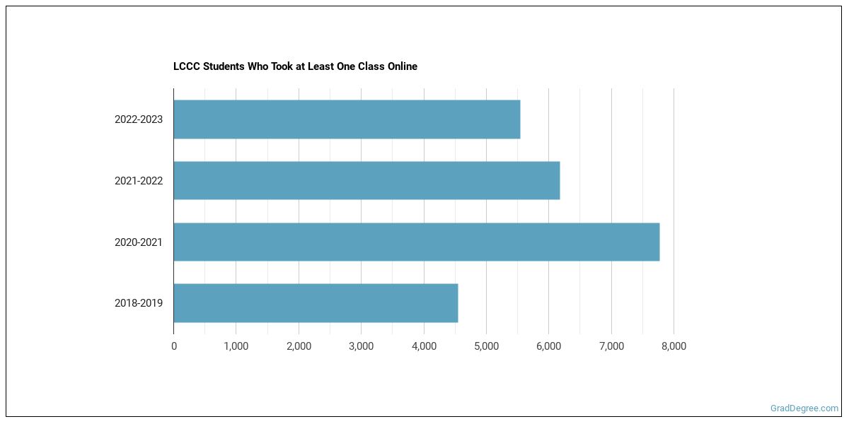 The following chart shows how the online learning population at LCCC has changed over the last few years.