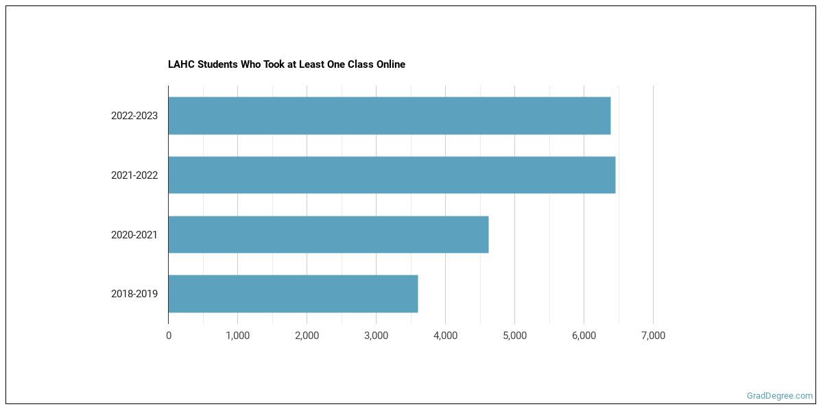 The following chart shows how the online learning population at LAHC has changed over the last few years.