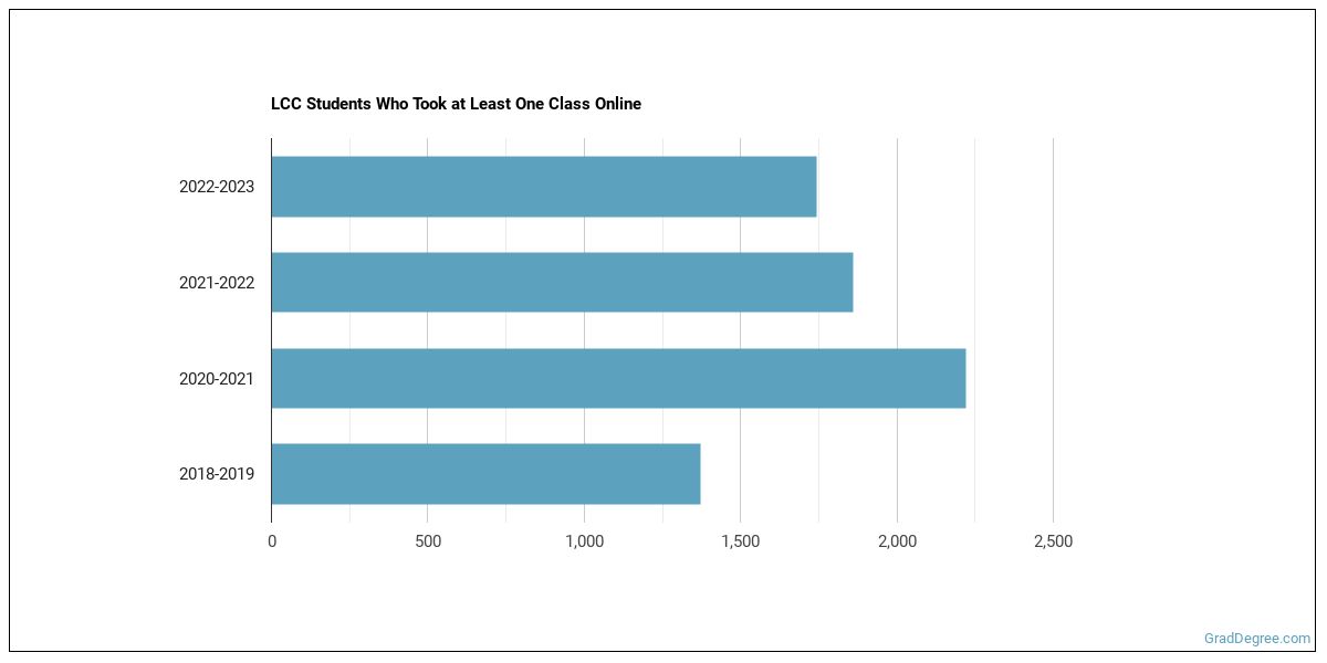 The following chart shows how the online learning population at LCC has changed over the last few years.