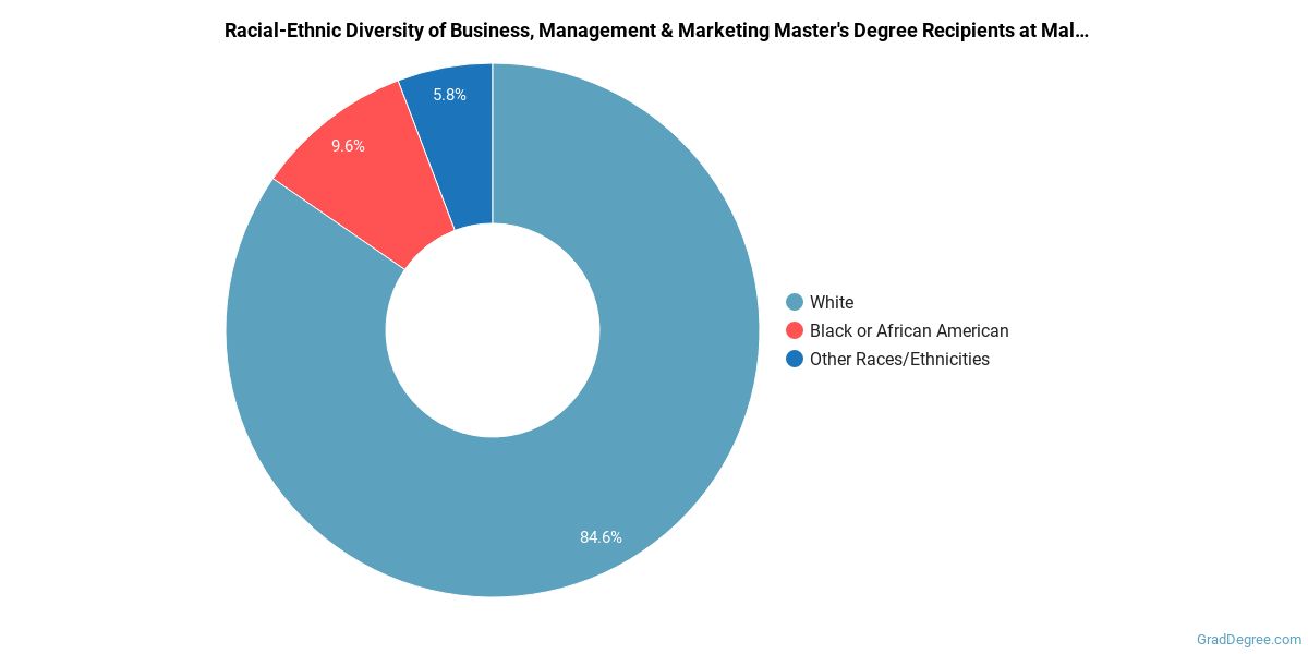 Of the students who received a business, management and marketing master's degree from Malone, 85% were white. This is above average for this degree on the natiowide level.
