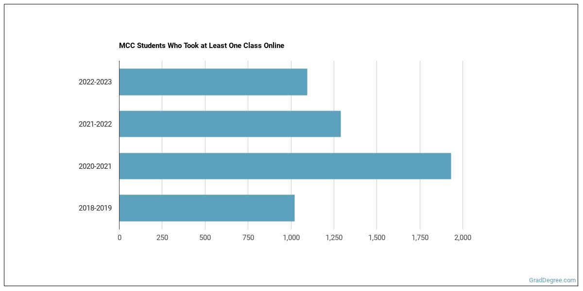 The following chart shows how the online learning population at MCC has changed over the last few years.