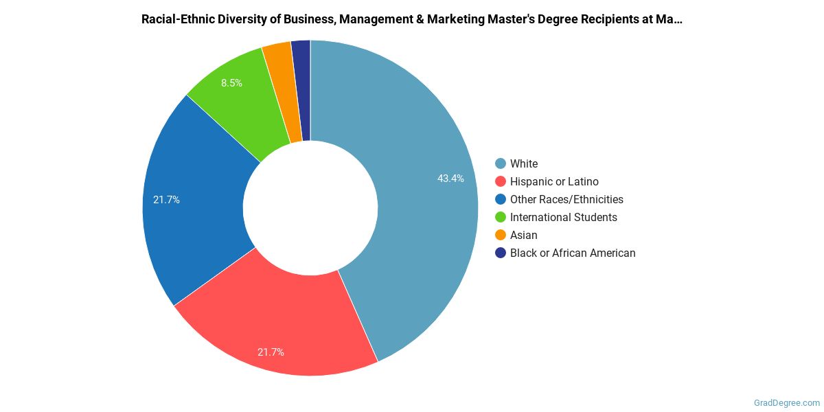 The following table and chart show the race/ethnicity for students who recently graduated from Manhattan College with a master's in business, management and marketing.