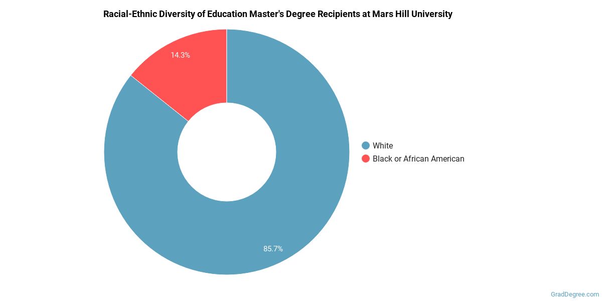 Of the students who received a education master's degree from Mars Hill, 86% were white. This is above average for this degree on the natiowide level.