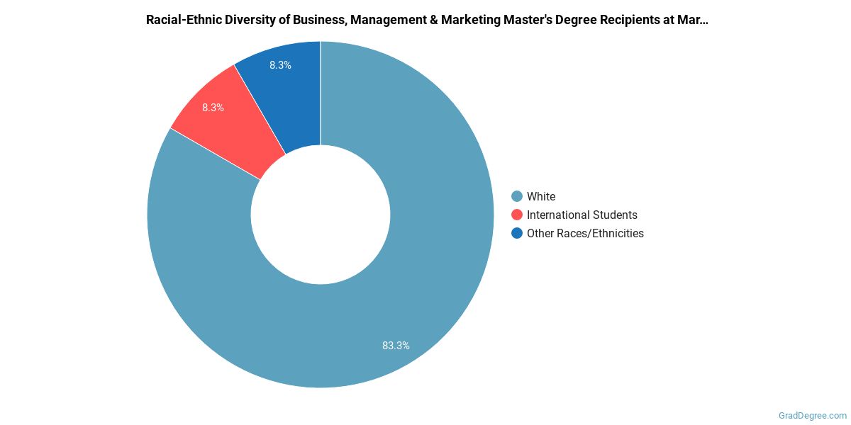 Of the students who received a business, management and marketing master's degree from Martin Methodist, 83% were white. This is above average for this degree on the natiowide level.