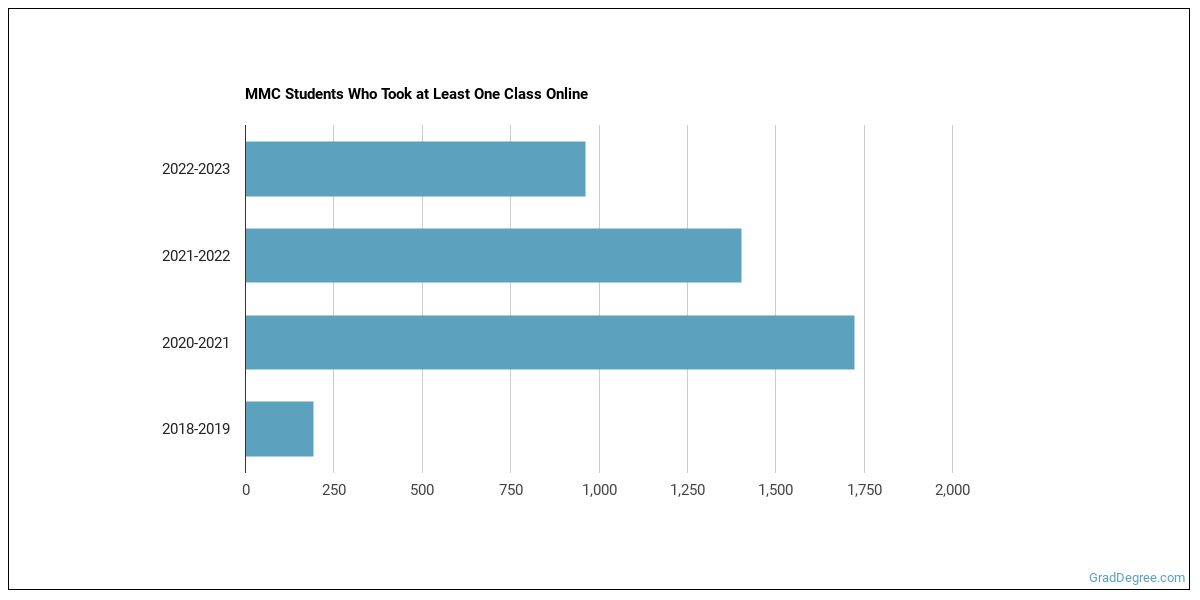 The following chart shows how the online learning population at MMC has changed over the last few years.
