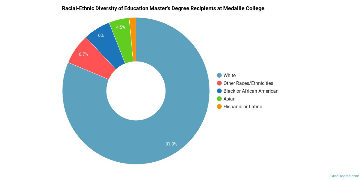 Of the students who received a education master's degree from Medaille, 81% were white. This is above average for this degree on the natiowide level.