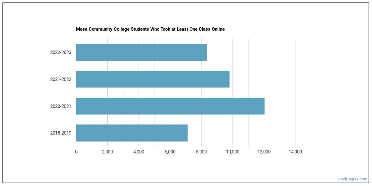 The following chart shows how the online learning population at Mesa Community College has changed over the last few years.