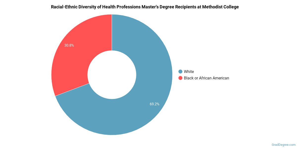 Of the students who received a health professions master's degree from Methodist College, 69% were white. This is above average for this degree on the natiowide level.